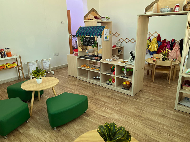 - A unique ‘Desert camp area’ that offers sensory play, and role-play opportunities with tents, camels, a well, a campfire, etc. It’s an area children can relate to, especially as many of them enjoy desert camping trips with family over the weekend.
